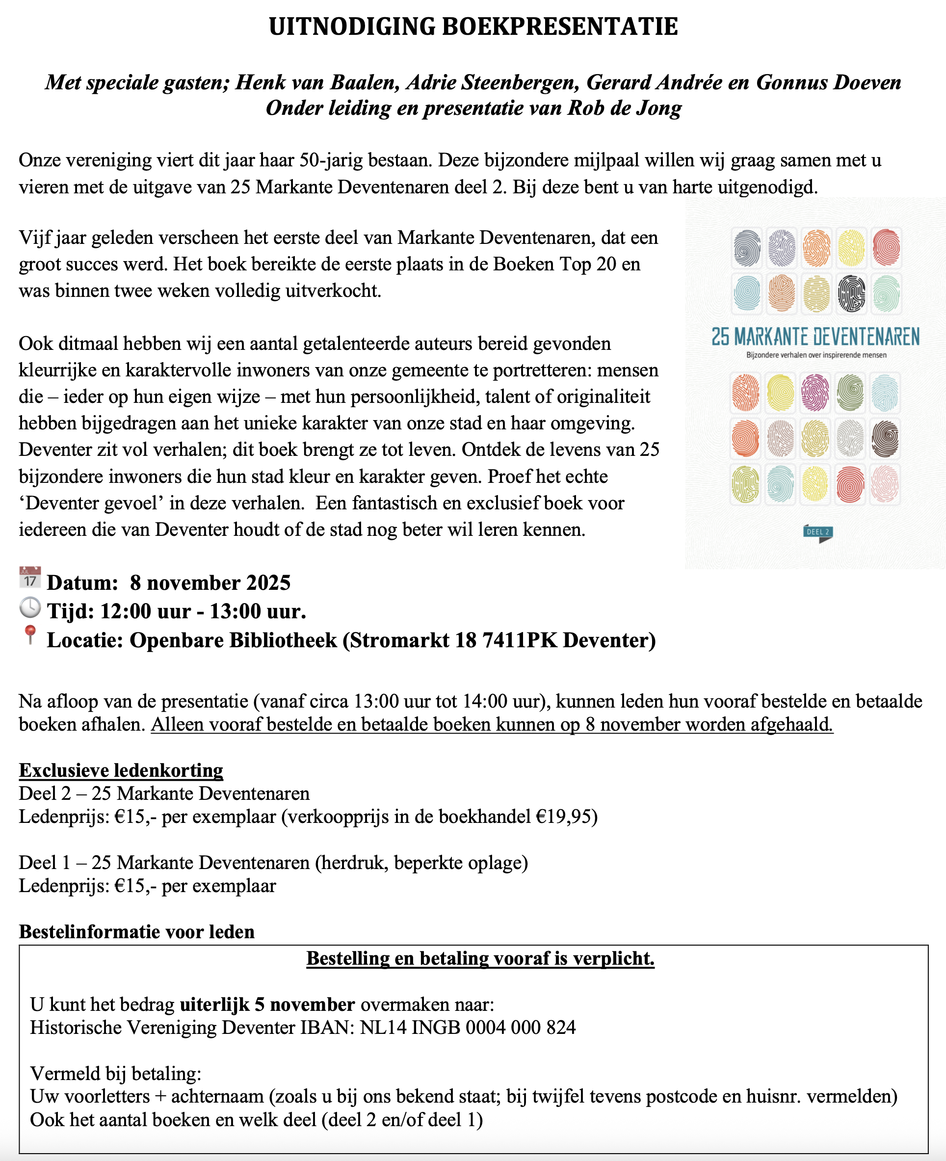 Geachte dames en heren, leden van de Historische Vereniging Deventer,
