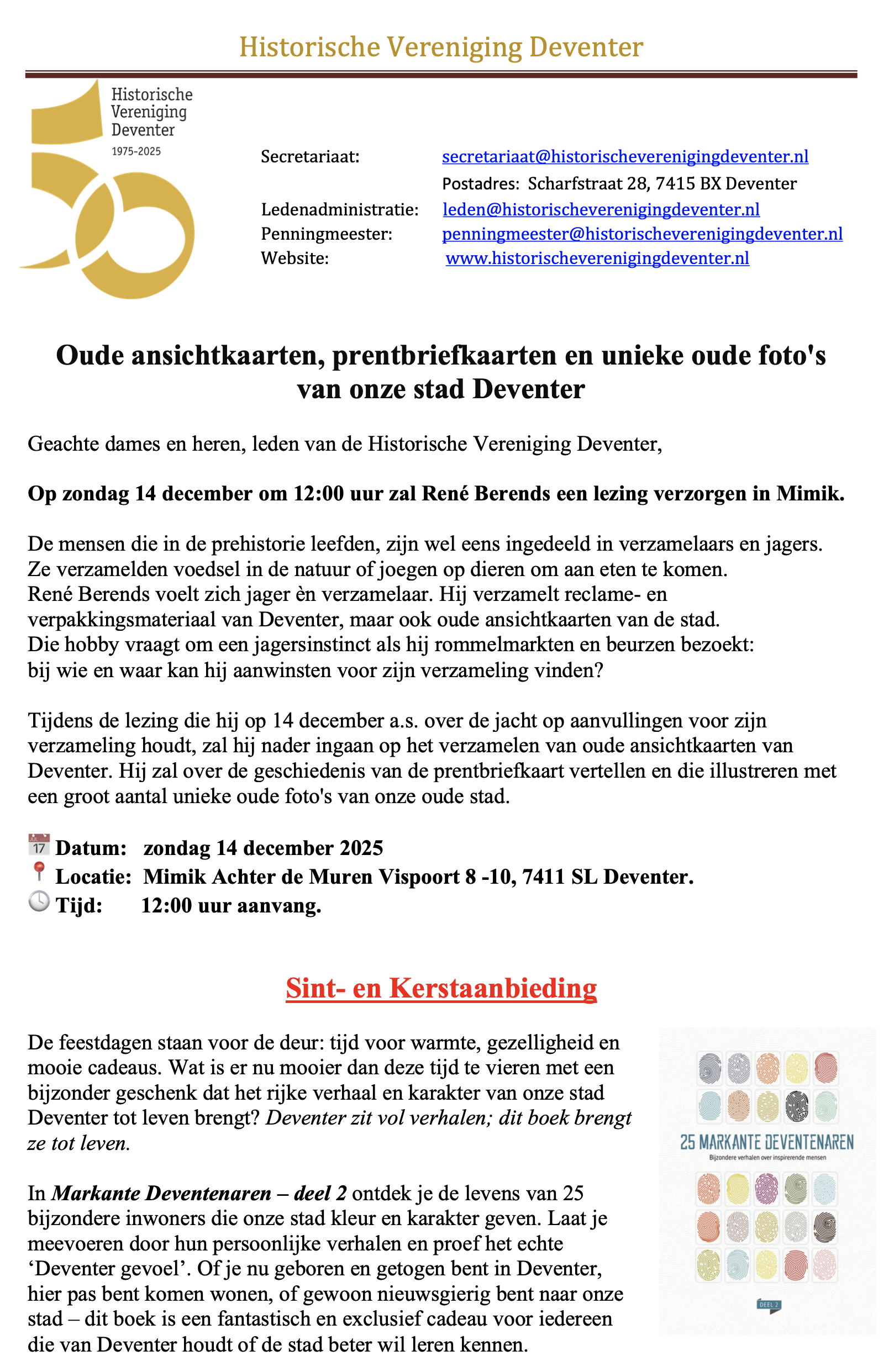 Geachte dames en heren, leden van de Historische Vereniging Deventer,